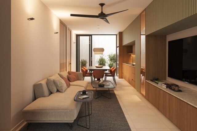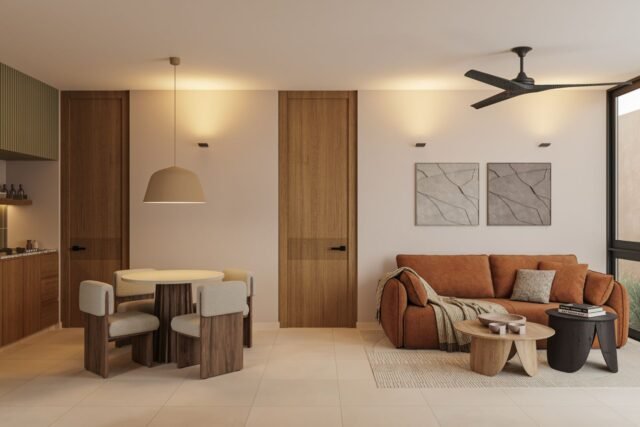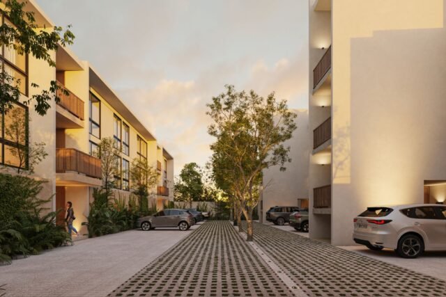 This development in Temozón, Mérida, offers 24 apartments with a maximum of two bedrooms, designed for those seeking a balance between comfort and contact with nature. Its distribution takes advantage of the space to create a harmonious environment, where every detail contributes to a peaceful and functional living experience.