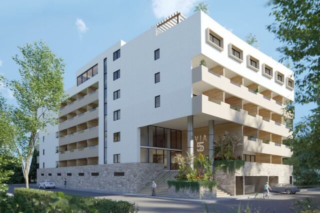 Via 55 is an apartment development with a modern architectural design, located just one block from the Federal Highway in Playa del Carmen. With 87 units of different sizes and distributions, this project offers spaces designed for comfort and contemporary lifestyle, with top quality finishes and amenities designed for the well-being of its residents.